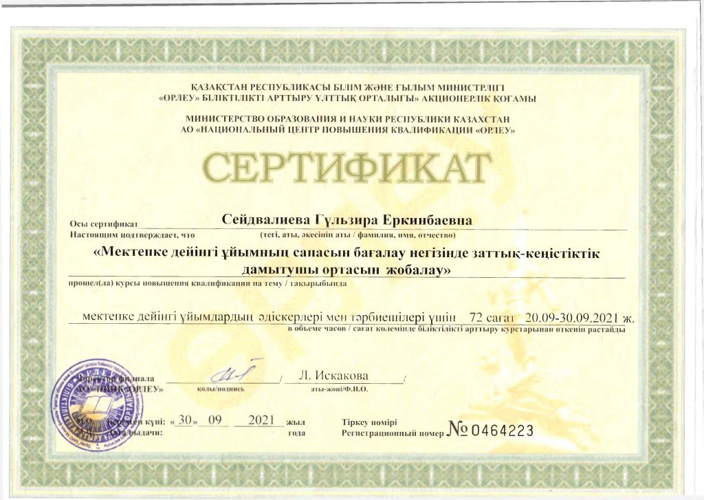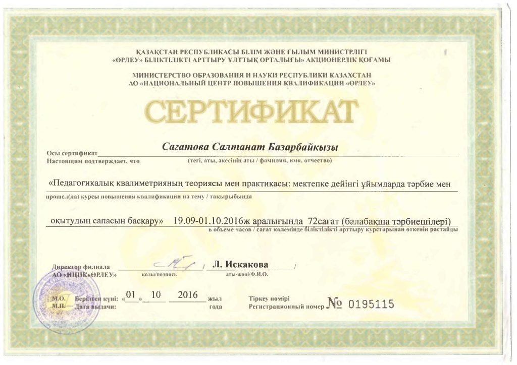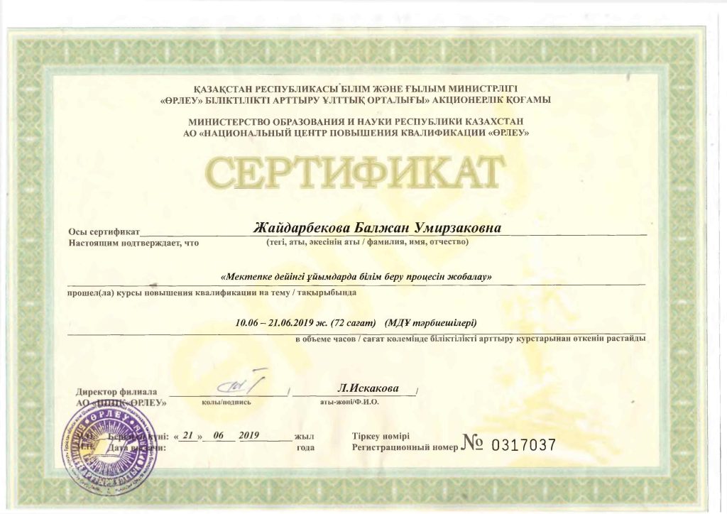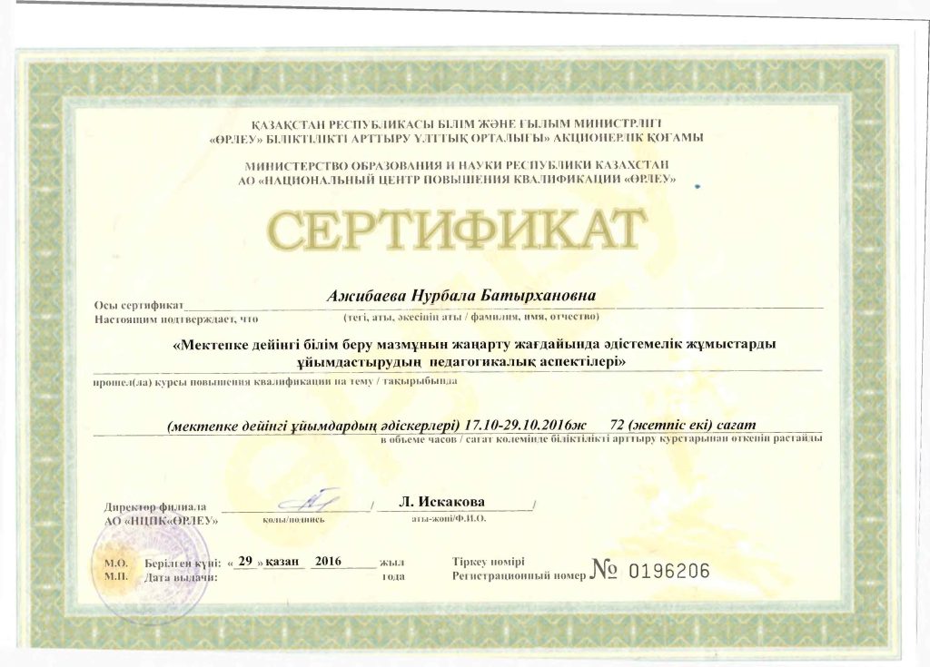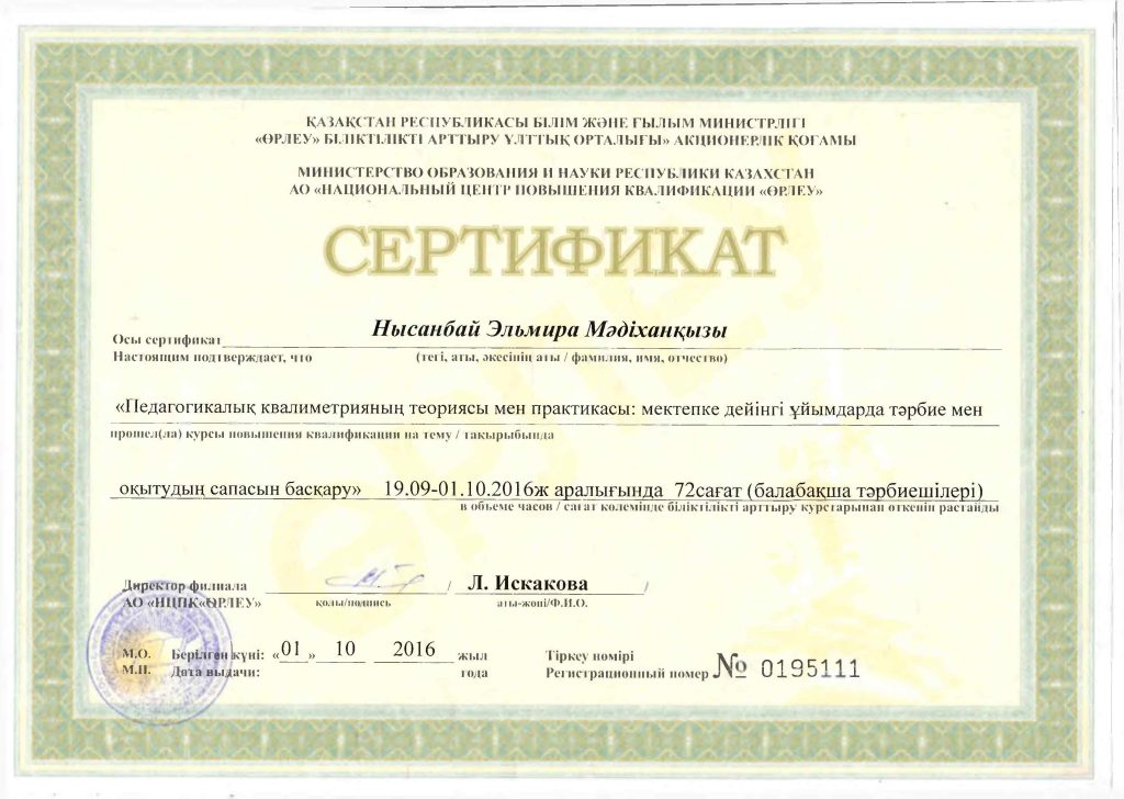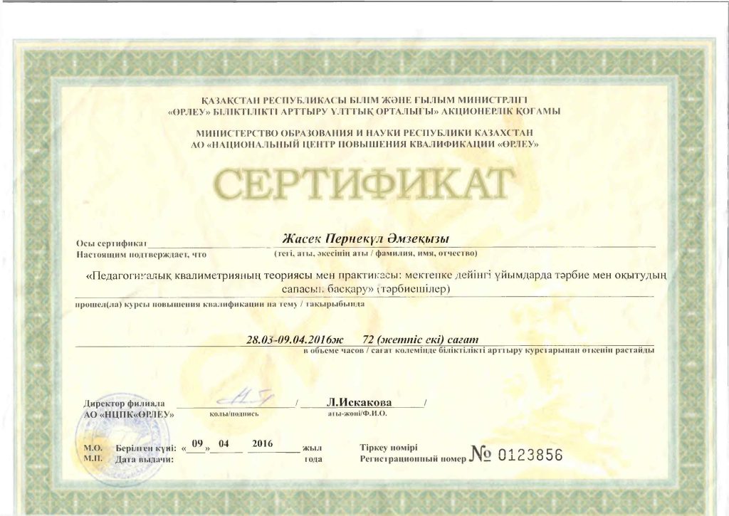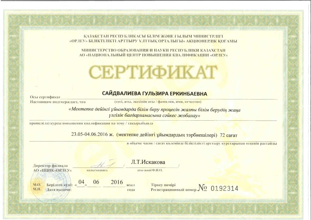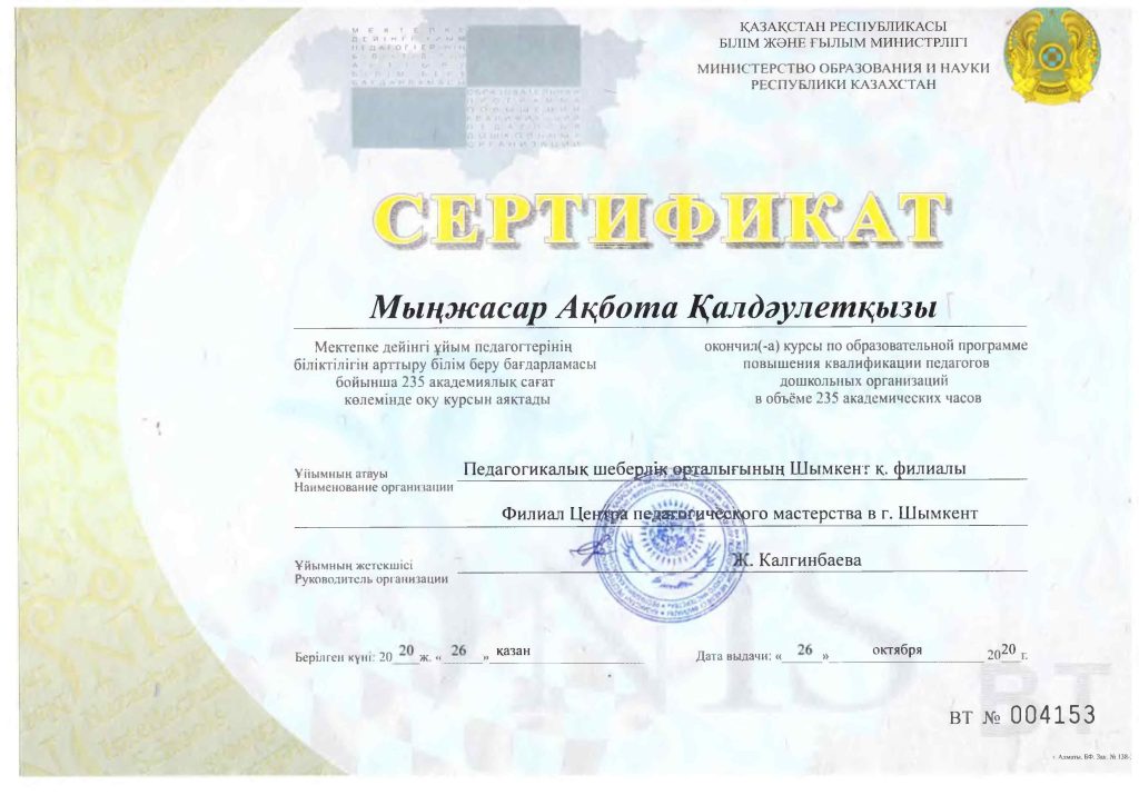 Педагогтар сертификаттары