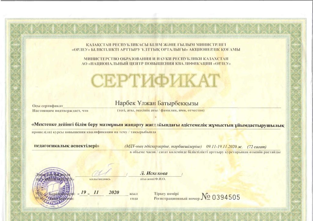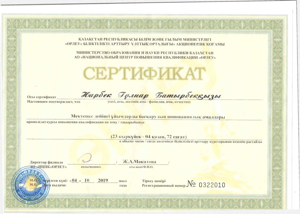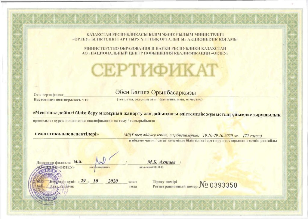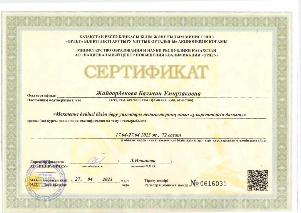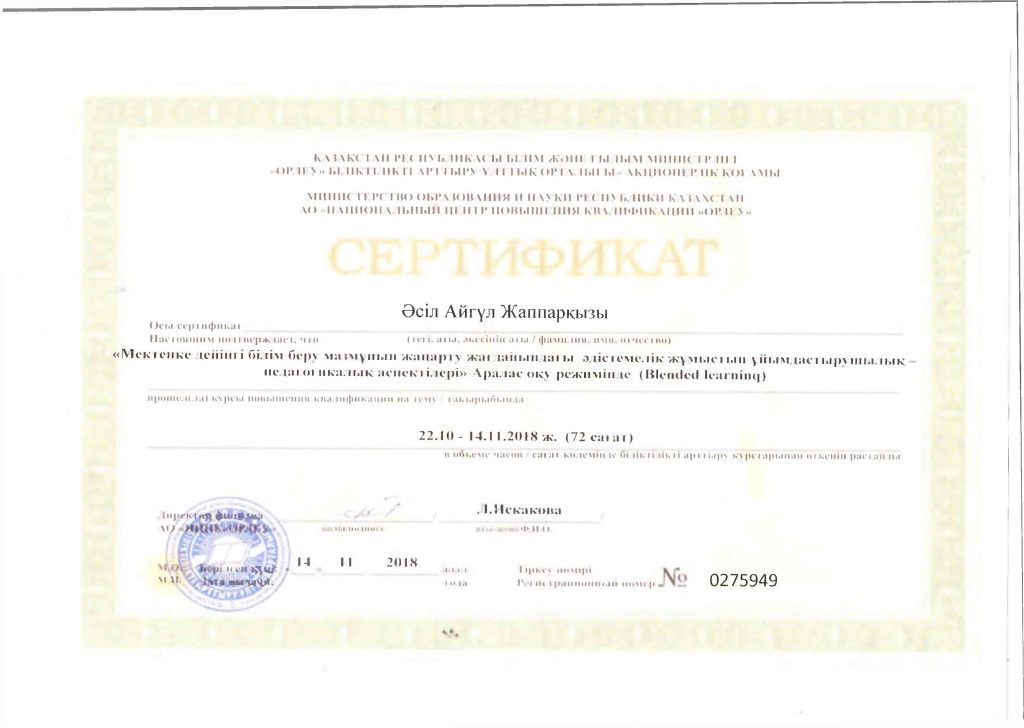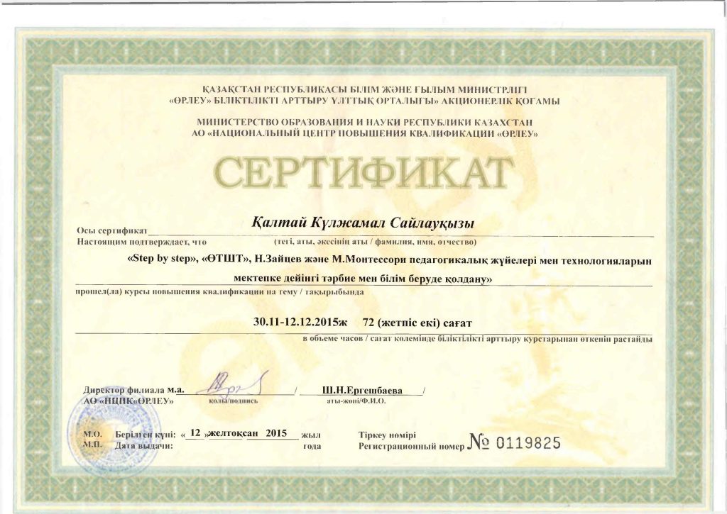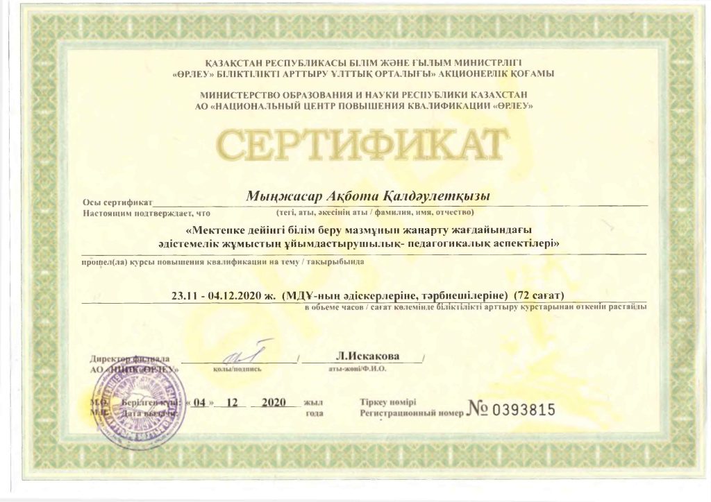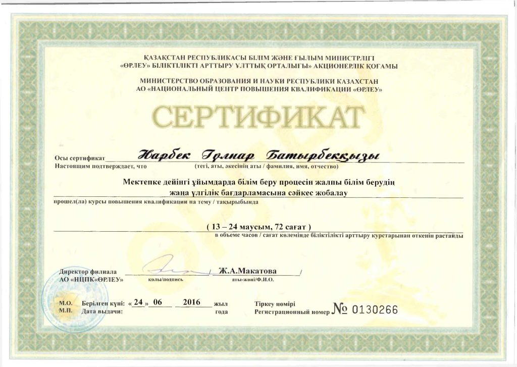 Педагогтар сертификаттары