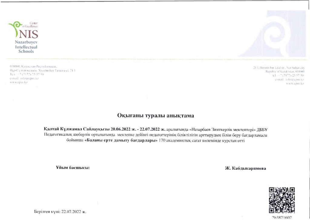 Ертеңгіліктер 2022-2023 оқу жылы